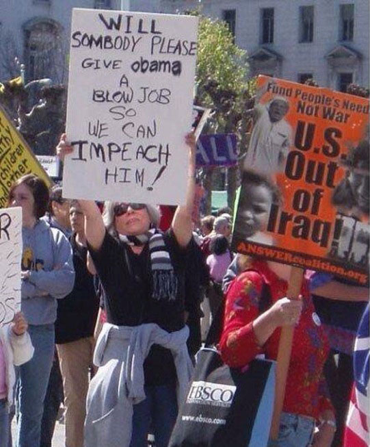 I hate posting political shit because I don’t want to take sides. I think both sides suck balls and that’s just the way I am. But today over at GFY I seen a photo that was so fucking funny I just had to post it.