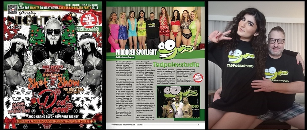 TadpoleXStudio is also featured in a ‘Producer Spotlight’ this month in the new issue of NightMoves Magazine. Moutasem Seyam tackles the sticky topic of generative AI with Tad on page 47 of their recent holiday issue. He shares an unnerving experience he recently had with a fan on social media.